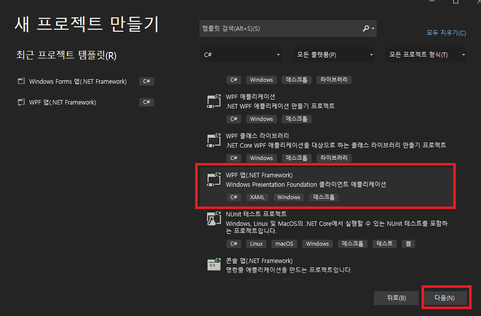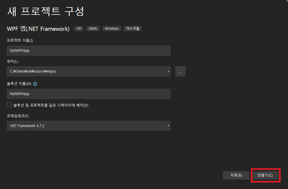 2. WPF 앱 (.NET Framework) 로 생성