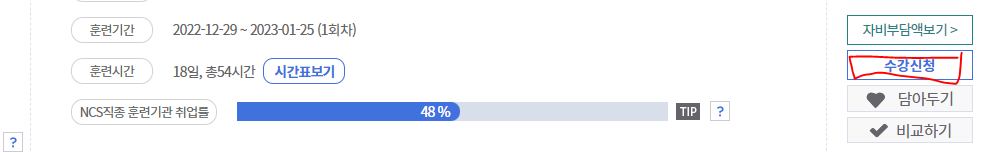 4. 훈련과정에 있는 과목들 중 아무거나 들어가서 수강신청 클릭 (아무거나 상관없음)