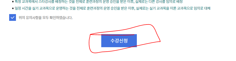 5. 훈련과정 수강신청 화면에서 수강신청 클릭