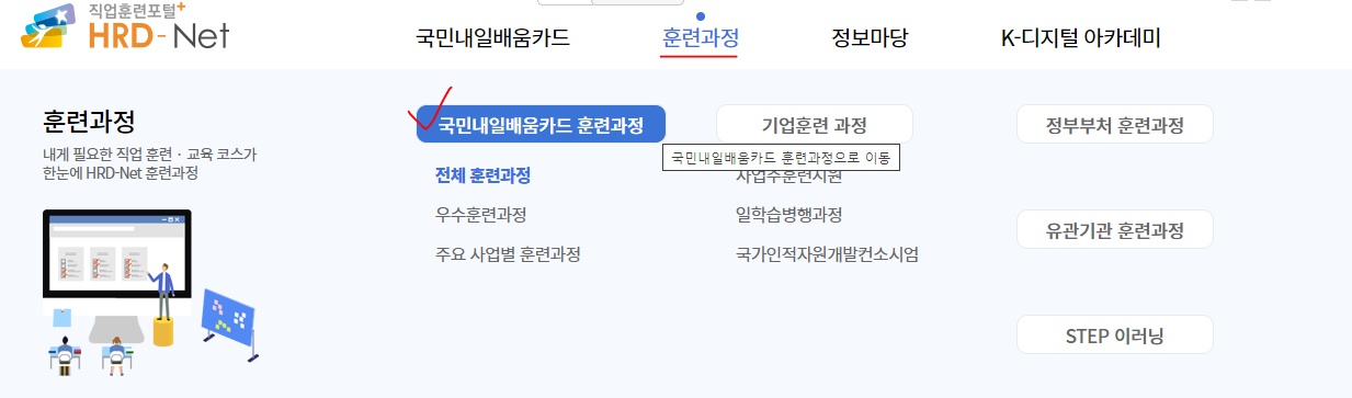 3. 상단에 훈련과정에서 -> 국민내일 배움 카드 훈련과정 선택