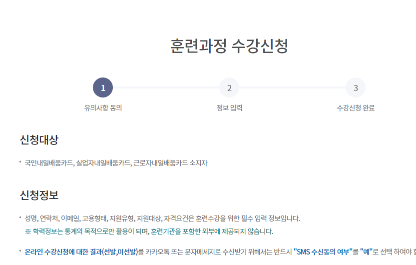 내일 배움 카드 국비지원과정을 등록하면서,