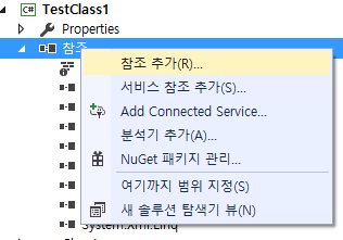 4. 적용하고자 하는 서버, 클라이언트 프로젝의 참조 추가로 작성한 dll 추가하기